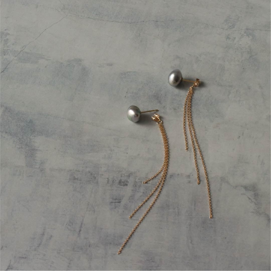 - タヒチパールチェーンキャッチピアス K10 ¥33,000 tax in