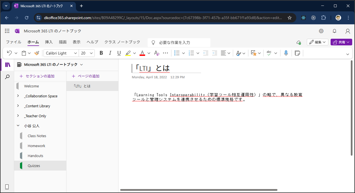 生徒向け:自分専用のノートにアクセスして、学習内容を記録できます。