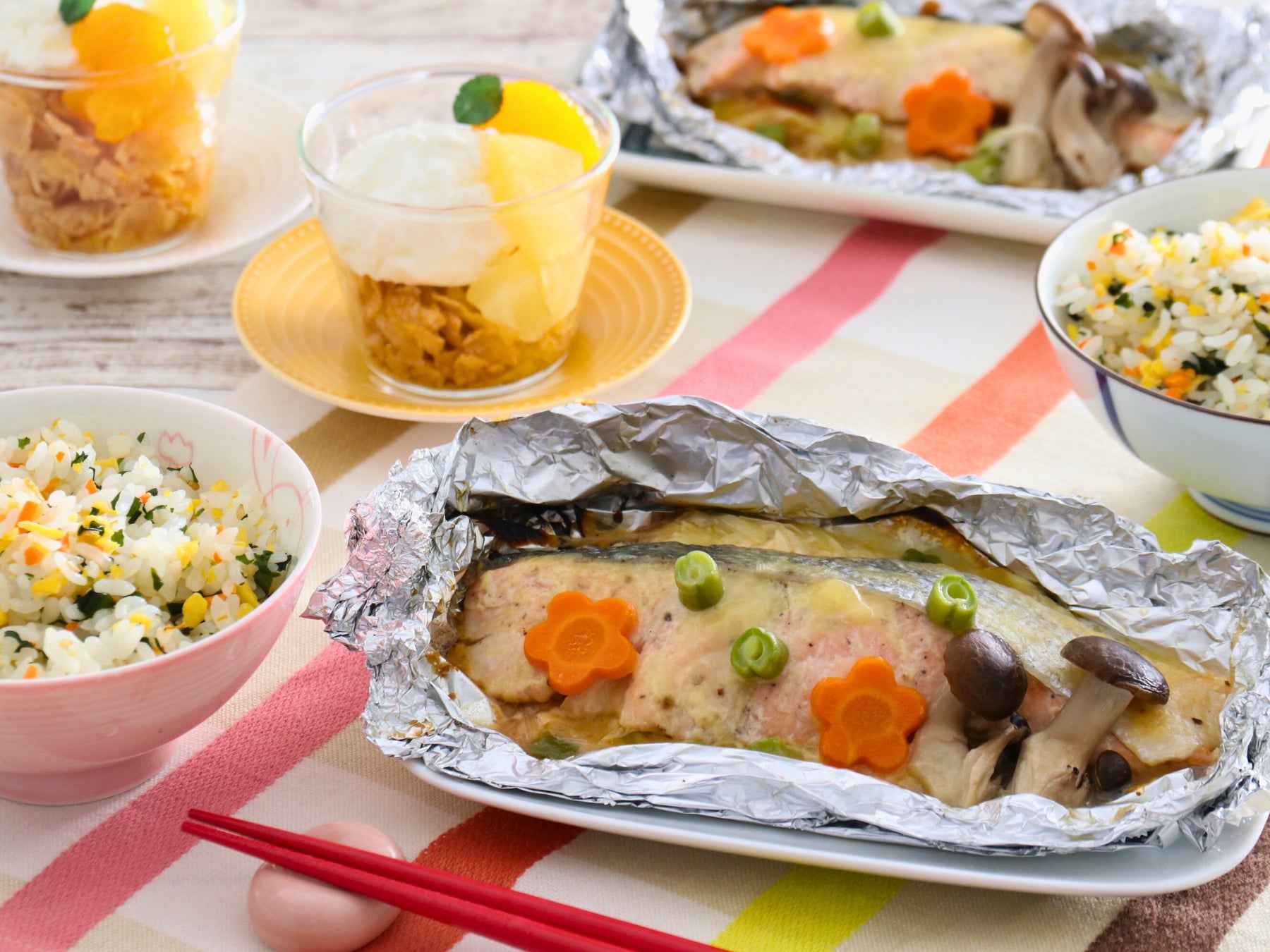 群馬県が開発した新たなニジマス「超絶サーモンV3」を、旬のきのこと一緒にホイルに包んで焼くと、柔らかく、ふんわりとした食感とジューシーなうまみが口いっぱいに広がります。お子さまに人気のわかめごはんと、キッズパフェも作れる楽しいレッスンです。この機会にぜひ、「超絶サーモンV3」をお楽しみください!