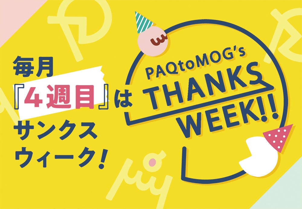 毎月第4週目には、月替わりでイチオシのブランドから、期間限定の特別販売商品やお得にポイントがつく特別セットなどが登場する<Thanks Week>。いつも「パクとモグ」でお買い物をしてくださる皆様に、月末はスイーツで癒されてほしい、そんな想いでおすすめのスイーツをセレクトしています。<Thanks Week>は月ごとに対象のお菓子が替わるのも楽しいポイント。毎月第4週目は「パクとモグ」を忘れずにチェックして!