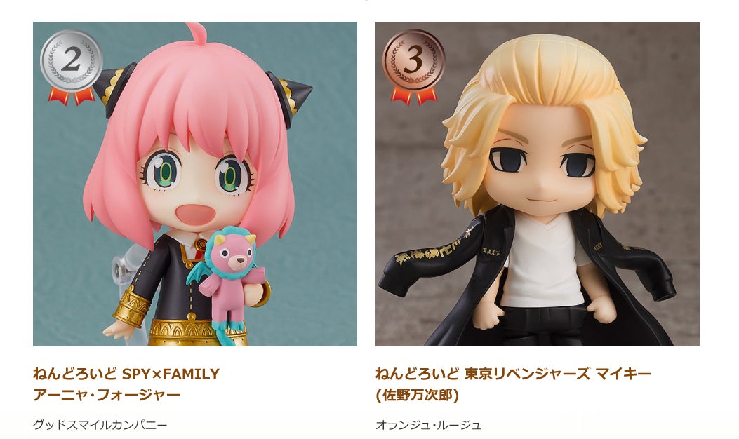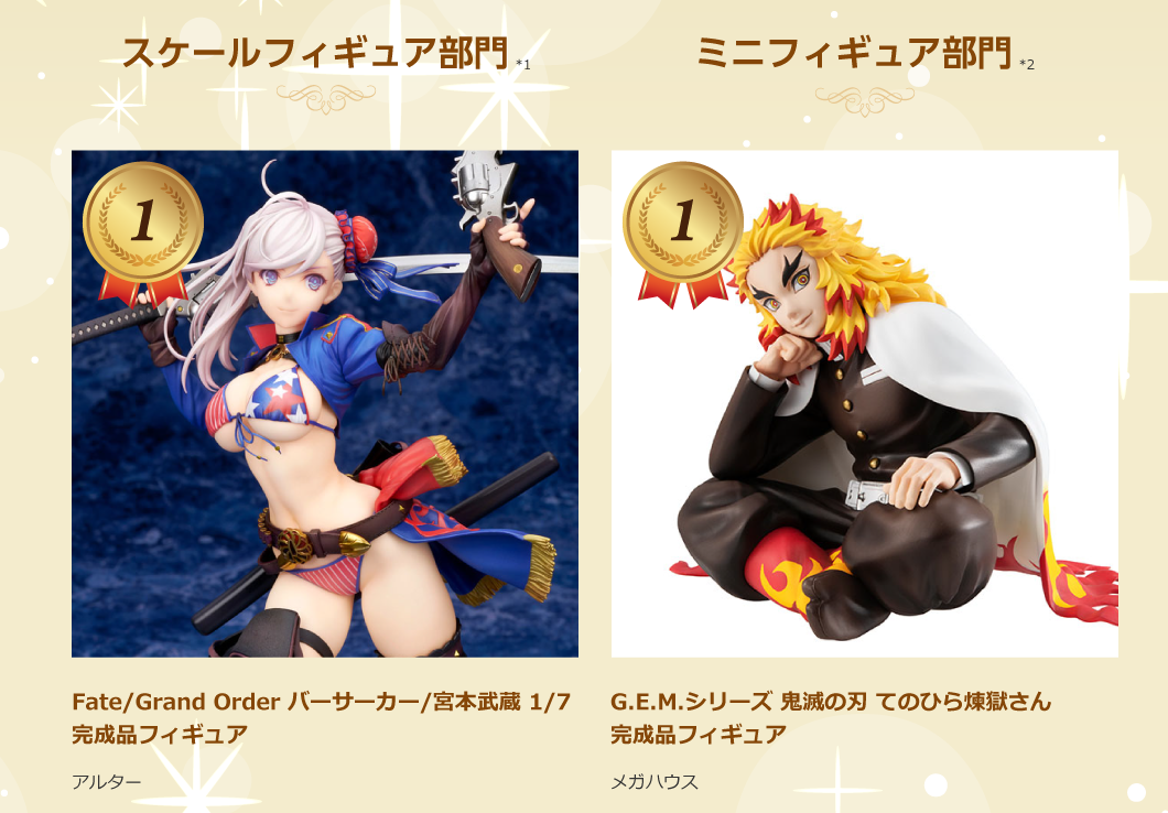年内に発売されたフィギュアを対象とし、自社独自の国内販売データ(販売数・金額など)を元に順位づけしている。