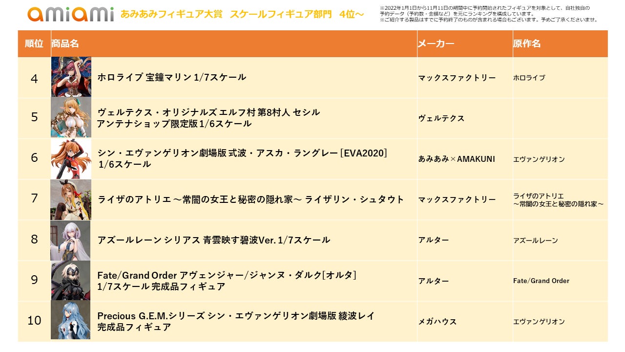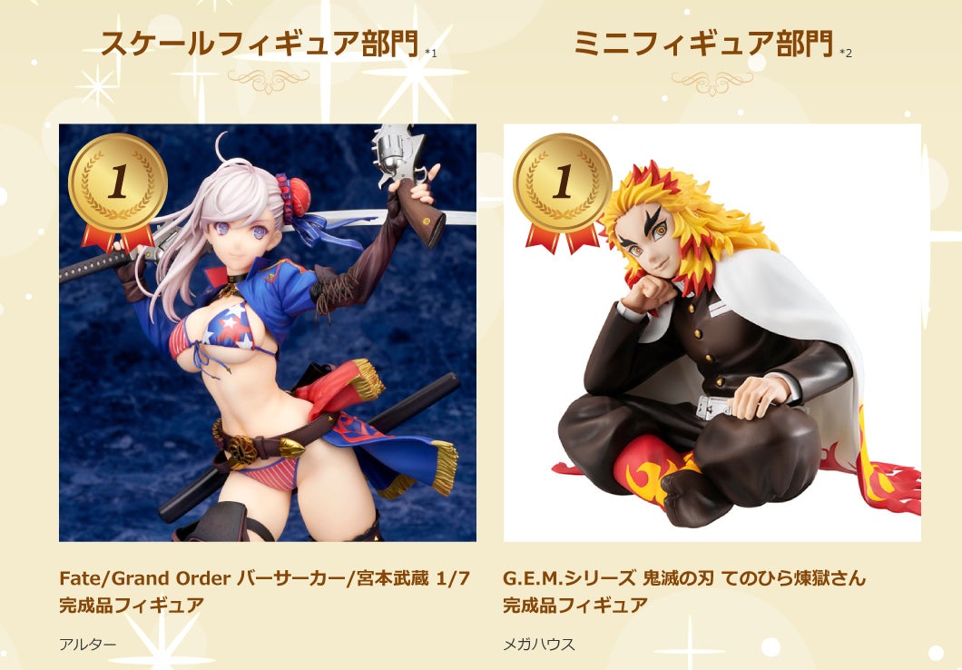 - 本年は、「スケールフィギュア部門」「ミニフィギュア部門」の2部門に分けて、それぞれTOP10までを発表!それぞれの1位を「あみあみフィギュア大賞2022」として認定