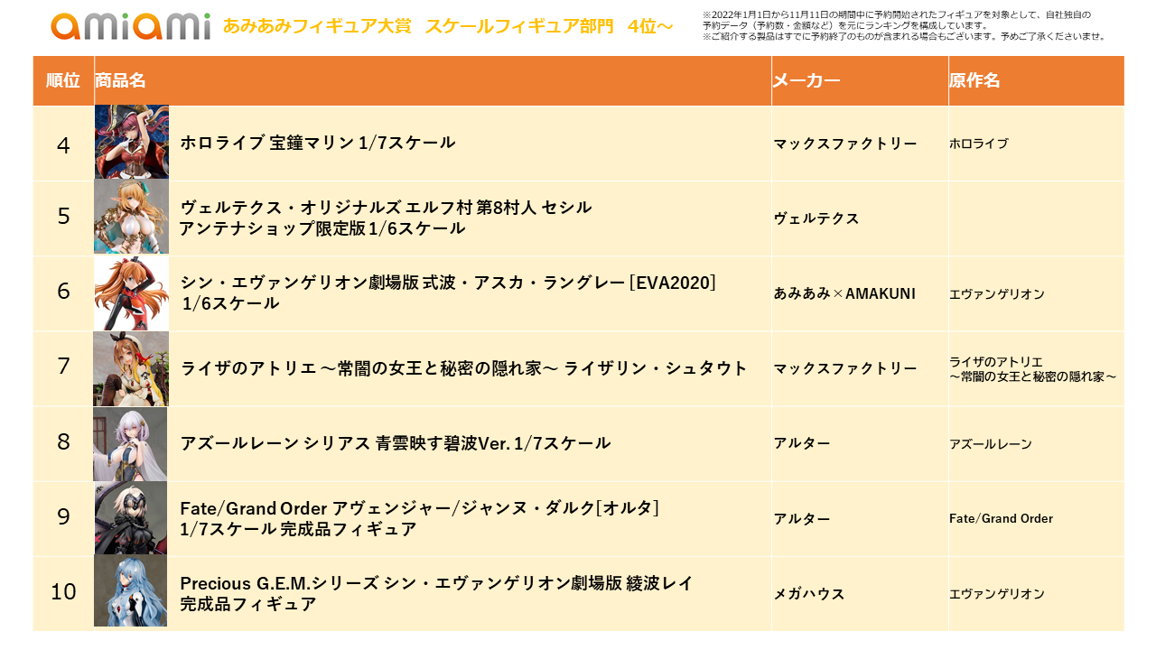 今年、最も売れたフィギュアはこれだ!日本最大級のフィギュアショップが選出「あみあみフィギュア大賞2022」が決定!