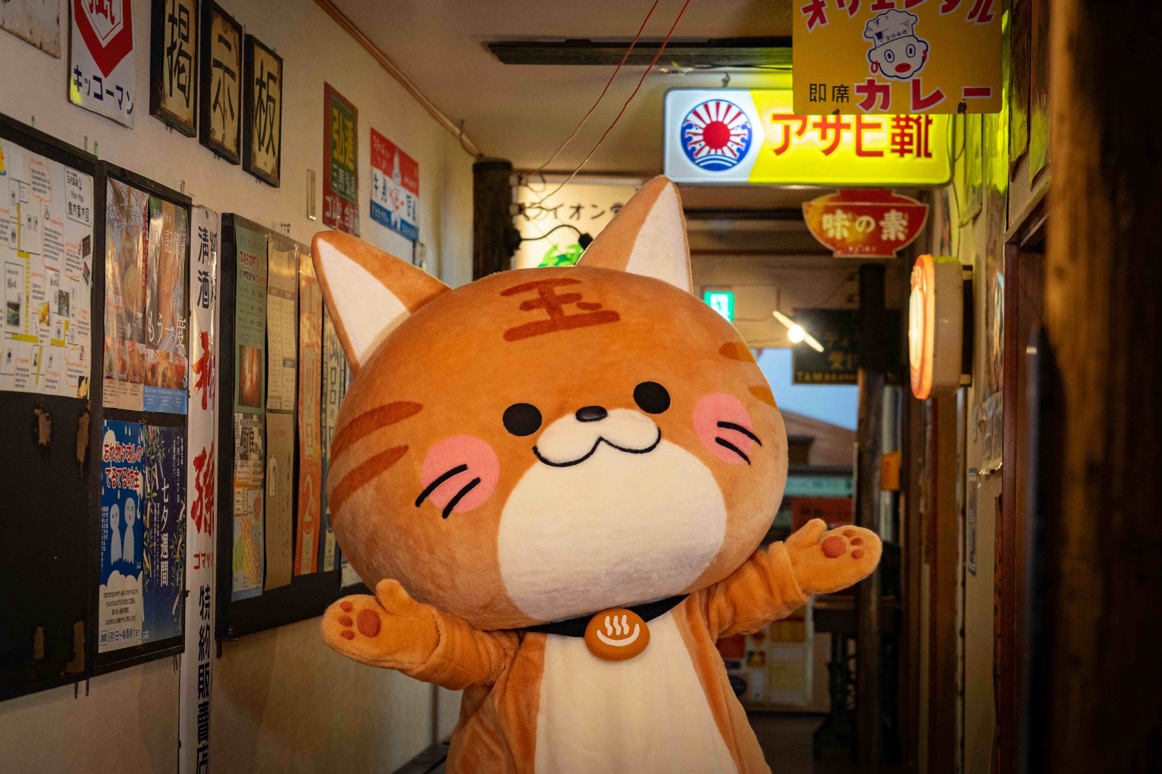 「玉ちゃん」は2025年3月26日(風呂の日)に誕生した、額に玉川温泉の「玉」の模様がはいった茶トラ猫です。玉川温泉のイベントを一緒に盛り上げたり、温泉周辺のおすすめスポットなどを巡り、ときがわ町を中心とした地域の魅力を発信する活動をしています。