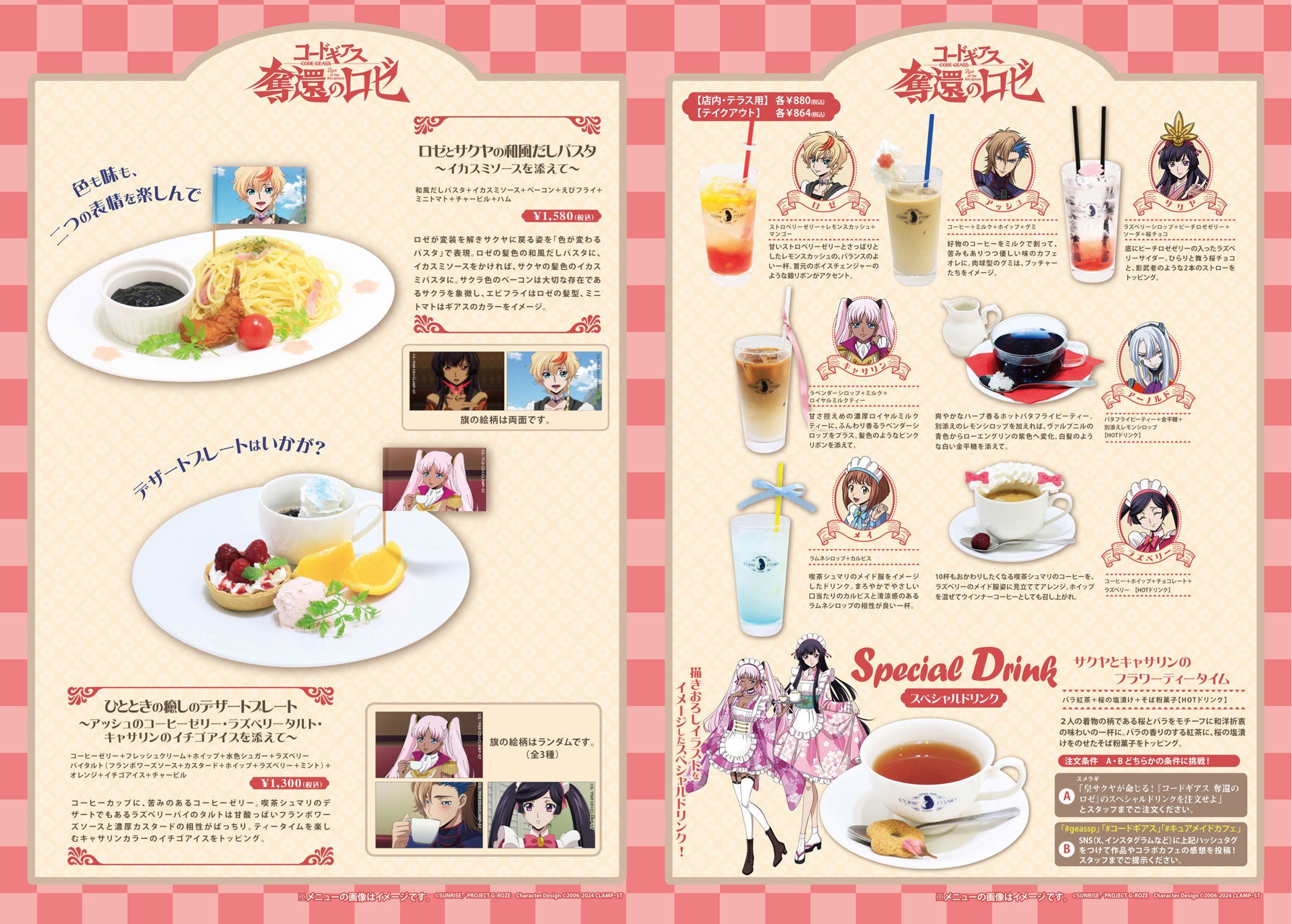 メニューはもちろん、特典、グッズなど、『コードギアス 反逆のルルーシュ』&『コードギアス 奪還のロゼ』づくしのコラボカフェをぜひお楽しみください。
