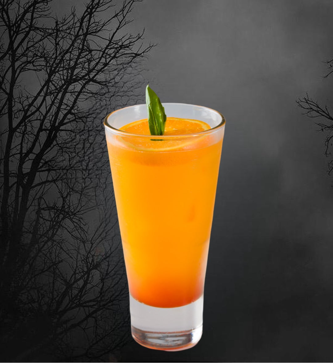 深みのあるスパイスラムをベースにアペロール、オレンジジュース、パッションフルーツ、マンゴーのトロピカルで、フルーティな味わい。ジャックオーランタンをモチーフにオレンジとバジルをトッピングした見た目もユニークなハロウィン限定カクテルです。