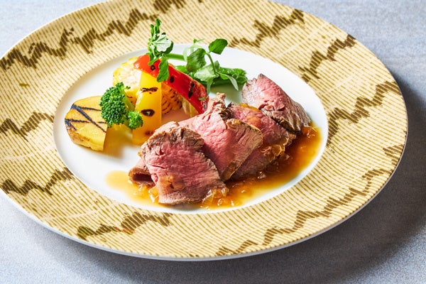 黒毛和牛内ももの低温調理 ヴォルケーノ風 オニオンソース