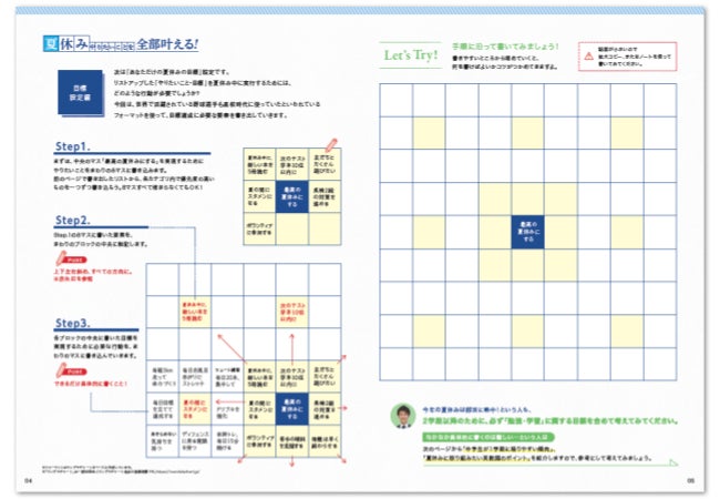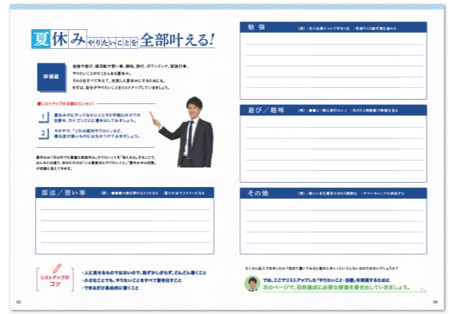 ワークシート形式で夏休みに達成したい目標をリストアップ。「見える化」で細かな目標まで整理できます。