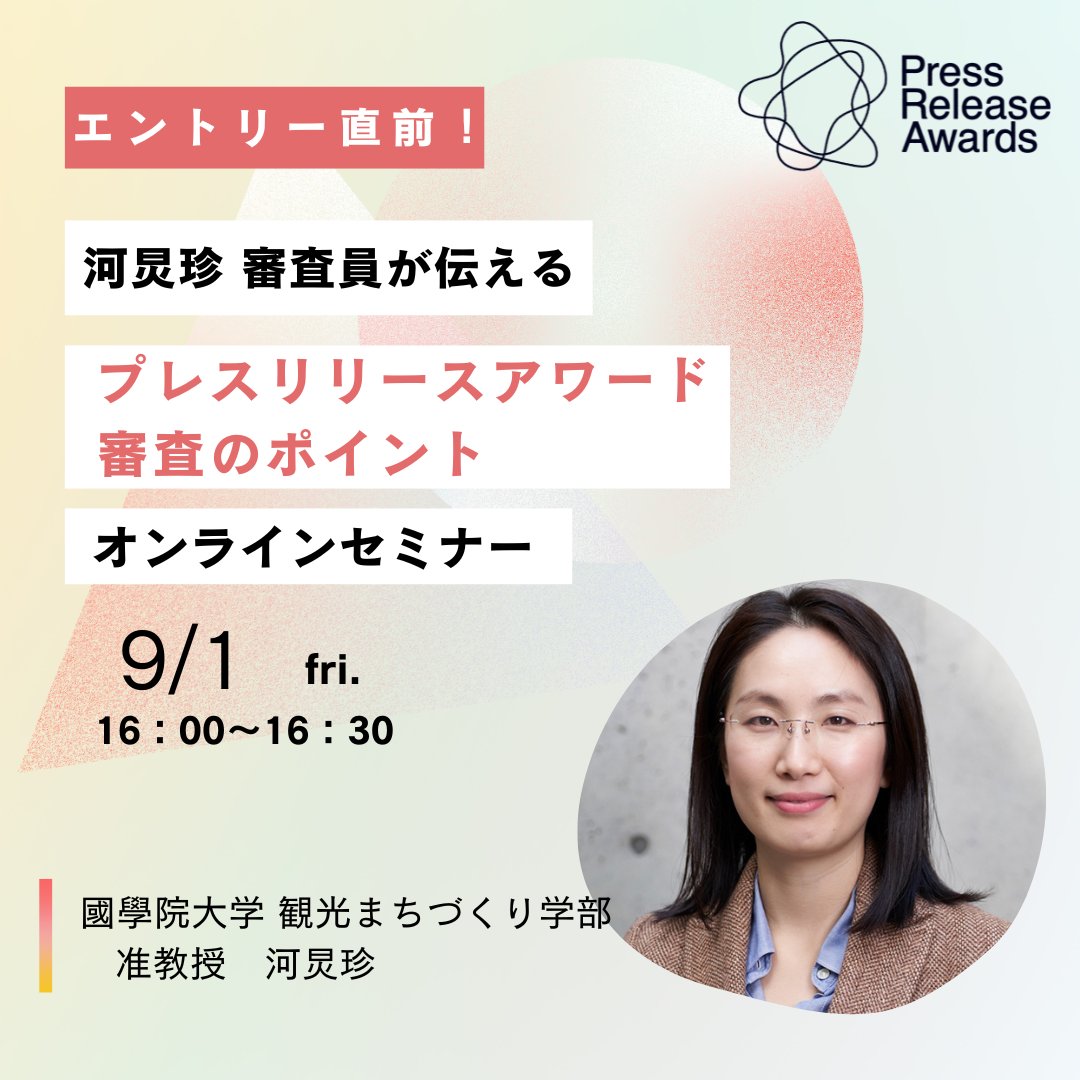 さらに9月1日(金)に、初年度より審査員を務める河炅珍氏によるプレスリリースアワードエントリーに向けた審査のポイントを解説するセミナーを実施いたします。昨年受賞プレスリリースの解説、プレスリリースアワード審査会で議論されている点などお話いただきます(セミナー参加方法は後述します)。