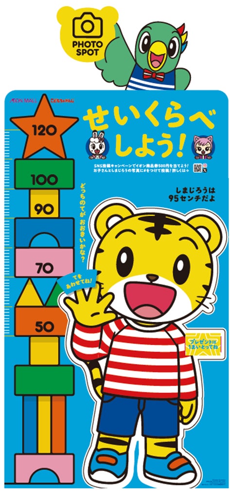 ■参加方法:館内にあるしまじろうのスタンディパネルを探して、せいくらべやマグネットパネルで遊ぶことができ、しまじろうと一緒に写真を撮っていただきます。