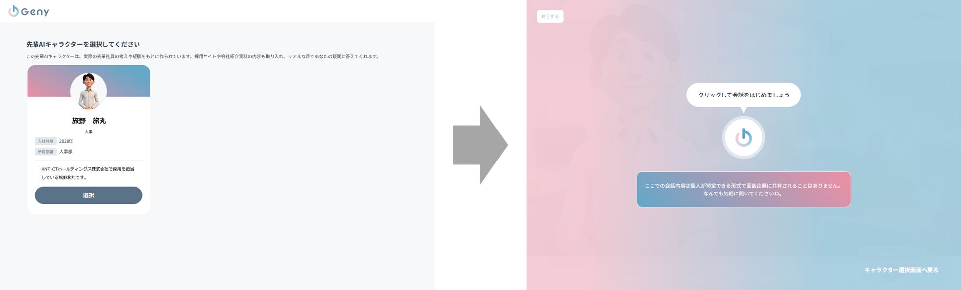 KNT-CTホールディングス株式会社(本社:東京都新宿区、代表取締役社長:小山佳延)は、株式会社lean(所在地:東京都千代田区、代表取締役:津島優美)が開発したAIアバターサービス「Geny(ジーニー)」を、来春当社への入社が内定している学生の皆さまを対象に、このほど試験導入いたしました。