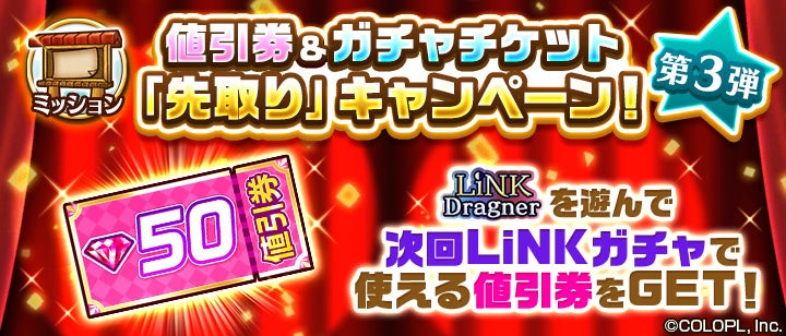 また今後開催される「LiNKシリーズ」と「コラボイベント」のキャラガチャをお得にガチャることができる「値引券&ガチャチケット「先取り」キャンペーン!」や、ゲーム内アイテムや特別な称号を獲得できる「LiNKシリーズを遊び尽くせ!キャンペーン」も引き続き開催中です。