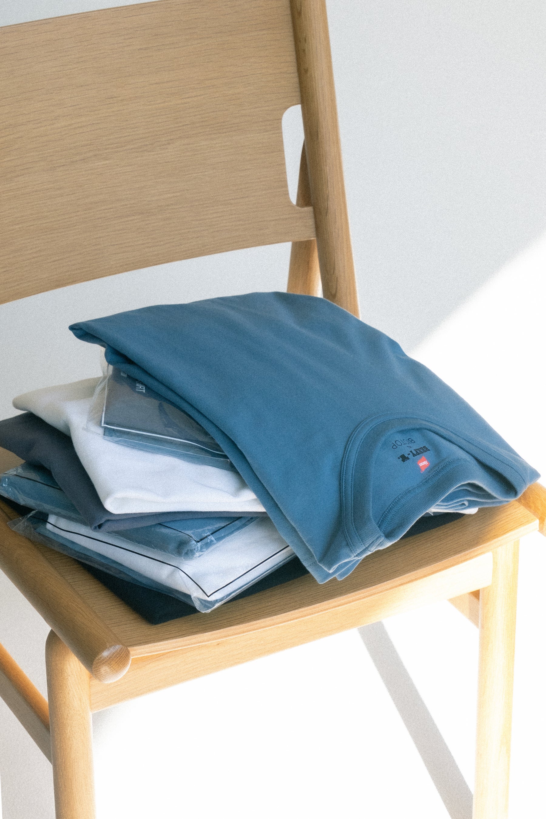 カラーはスタイリングの幅をより一層広げてくれるWHITEに加え、BIOTOPだけの別注カラーとして深みある色味に染め上げたBLACK、程よい抜け感のSLATE BLUE、モダンさが際立つBLUE GREYの全4色をラインナップ。