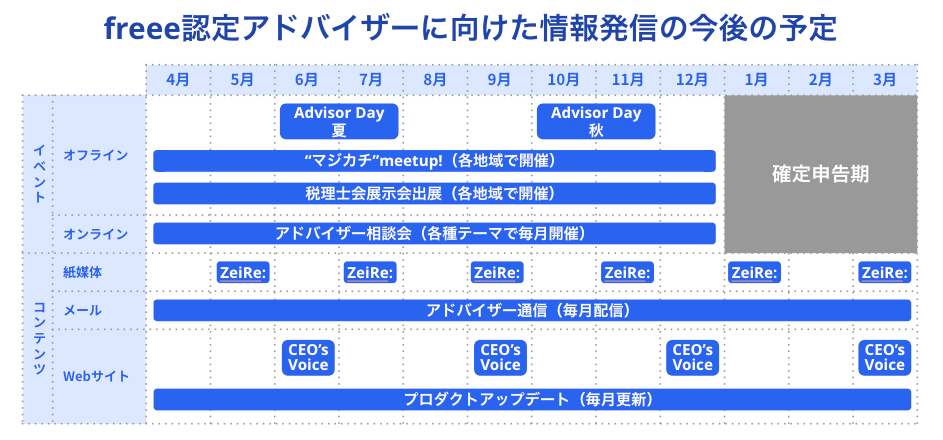 ・多くのチャネルを通じて税理士・会計士のみなさまに向けてfreeeのプロダクト情報をはじめ、業界を取り巻く環境に関する情報などをお届けします