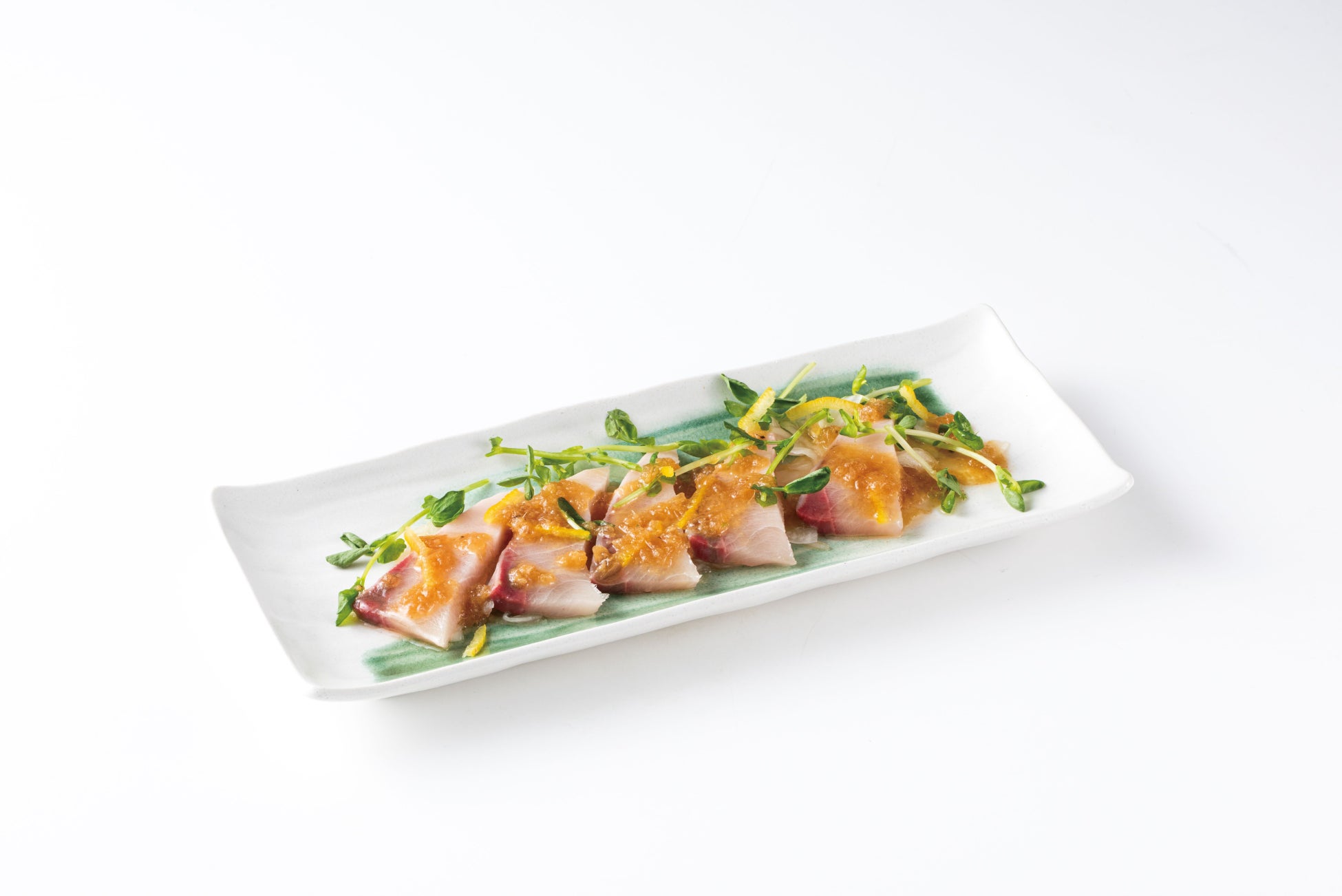 他にも飼料にアセロラを使い鮮やかな発色と爽やかなうまみが特徴のアセロラぶり※を使った刺身、カルパッチョやワインにピッタリの「生ハムとチーズのピンチョス」、「播磨灘産カキフライ」など、バラエティに富んだラインナップとなっております。