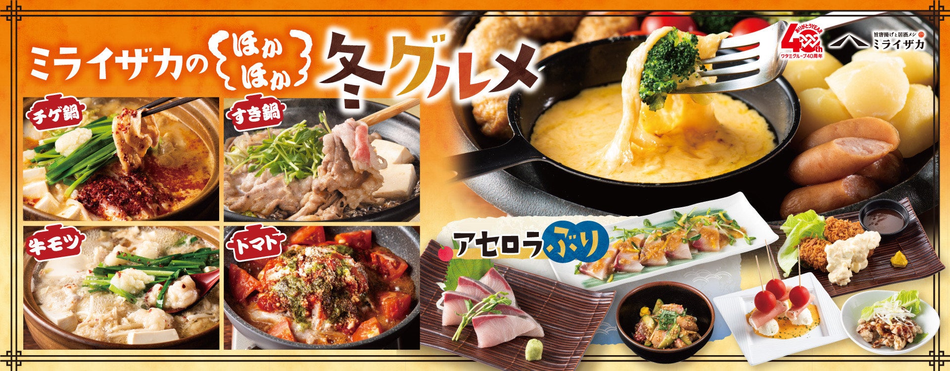 ワタミ株式会社(本社:東京都大田区、以下ワタミ)が展開する主力居酒屋業態の「ミライザカ」では、2024年10月16日より、冬の特撰メニューがスタートします。