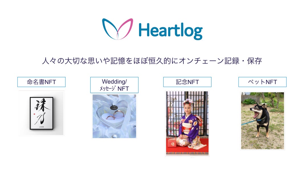人々の大切なものをオールオンチェーン/フルオンチェーンNFTとしてほぼ恒久的に保存するサービス。命名書NFT、記念NFT、Wedding/メッセージNFT、ペットNFTの4種を提供。暗号資産XYMまたは日本円での決済が可能。