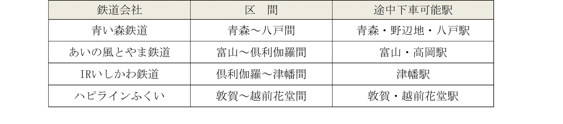 (2)道南いさりび鉄道線の各駅で下車した場合は、道南いさりび鉄道線全乗車区間の運賃が別に必要です(ただし木古内に限り途中下車が可能です)。また、北海道新幹線「新青森~木古内」間以外の区間にまたがって新幹線に乗車する場合は、新幹線の全乗車区間の運賃および料金が別に必要です。