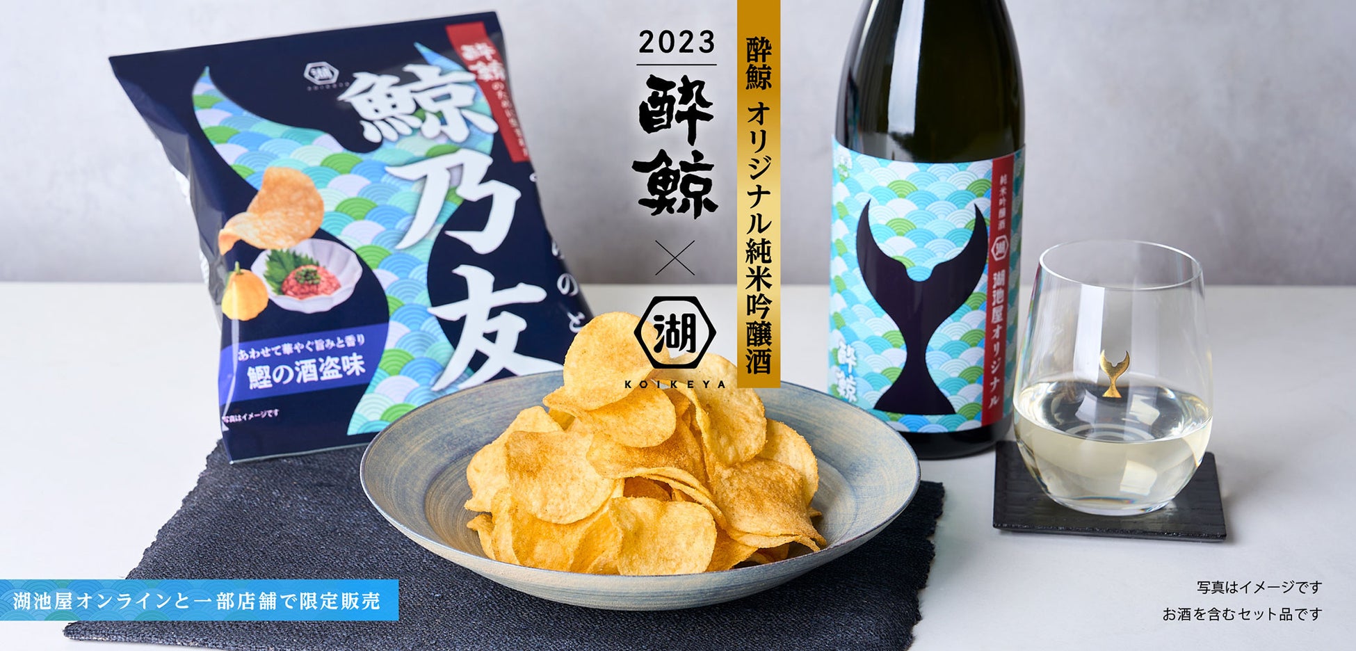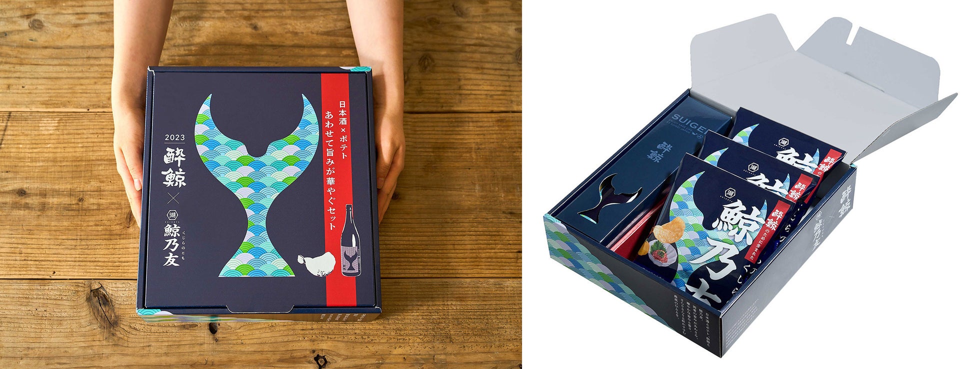 そしてこの度、2023年版の「酔鯨 湖池屋オリジナル」を新たに酔鯨酒造に醸造していただき、その日本酒とのマリアージュを計算し尽くして生まれた専用ペアリングポテト「鯨乃友」とセットにした「鯨乃友 あわせて旨みが華やぐセット」の再発売が決定しました。特製のギフトボックスに入れてお届けしますので、ご自身での晩酌にはもちろん、お祝いやお歳暮など、大切な人への贈り物にもぴったりです。