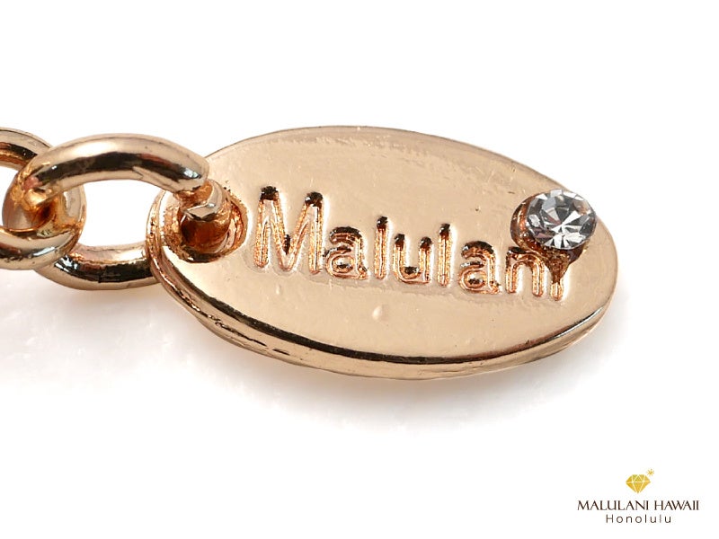 オリジナルチャームと水晶には、ハワイ語で「神に護られた」という意味を持つ「Malulani」と刻印。ブランドロゴでもあるこの言葉は、持つ人に「神のご加護がありますように」との祈りをのせています。