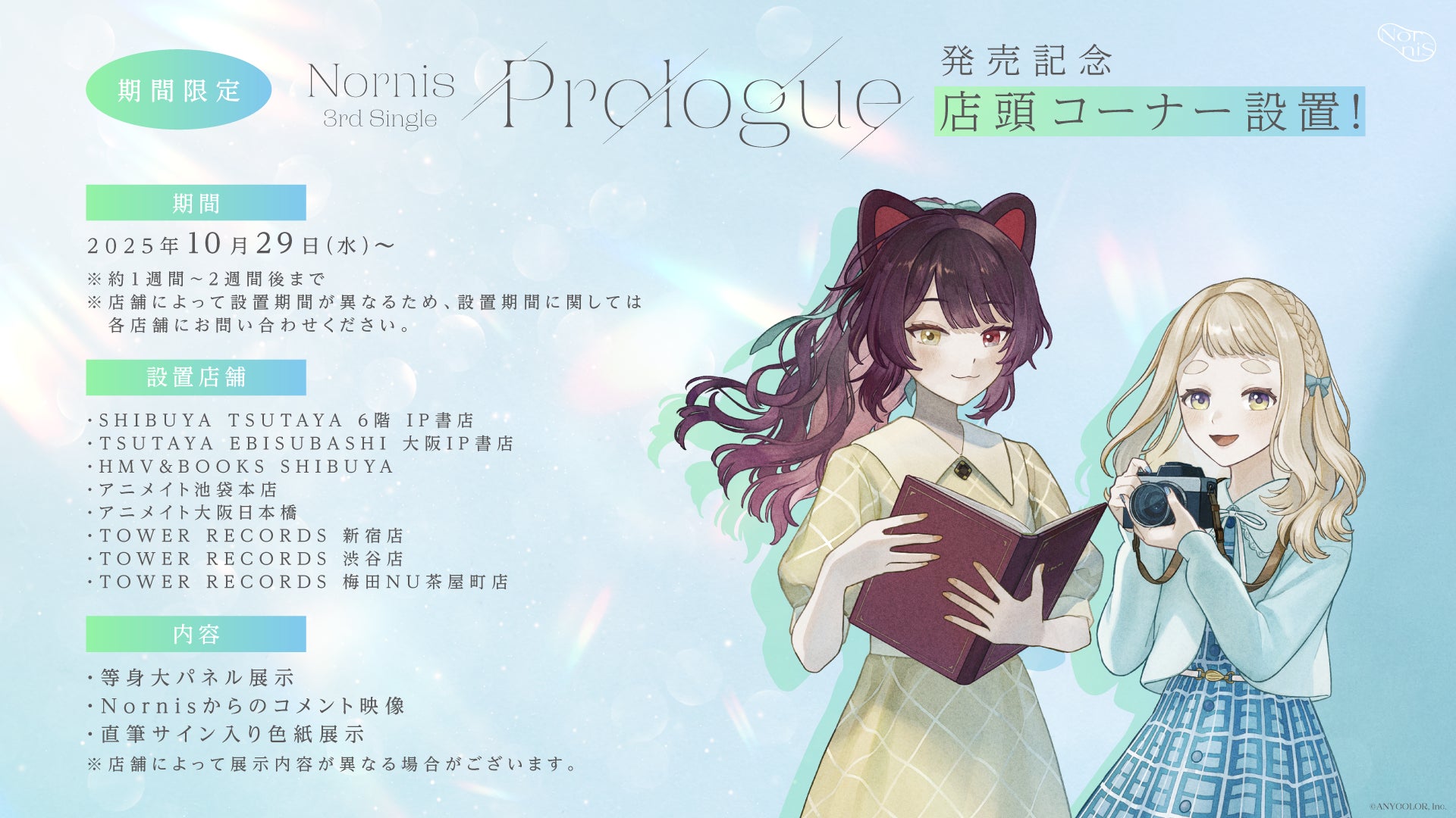 本日2025年10月29日(水)より、Nornis 3rd Single「Prologue」が全国の販売店にて発売いたしました。