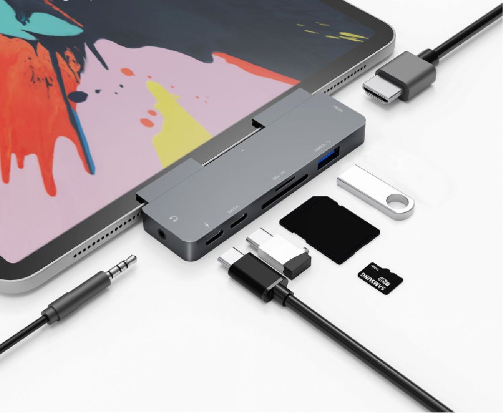 GeeHub(ジーハブ)は、7つのポートを備え、様々なデバイスをiPad Proに繋げることができる超便利なハブです。