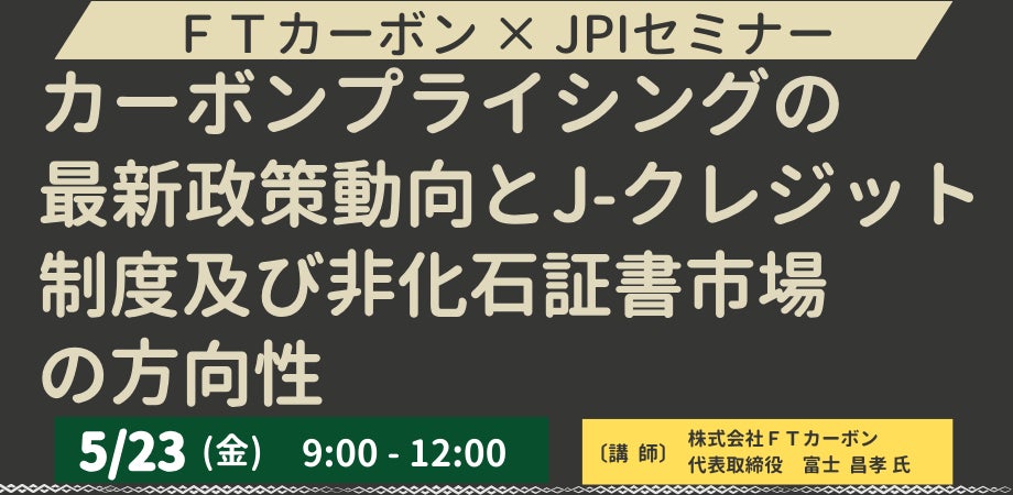 JPI(日本計画研究所)は、株式会社FTカーボン 代表取締役 富士 昌孝 氏を招聘し、カーボンプライシングの最新政策動向とJ-クレジット制度及び非化石証書市場の方向性について詳説いただくセミナーを開催します。