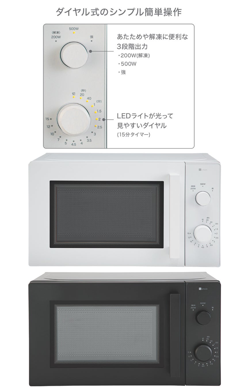 ダイヤルを回すだけの簡単操作で、全国で使えるヘルツフリーのターンテーブル方式の電子レンジも同時に発売しました。インテリアに自然になじむ、マットな質感のホワイト、ブラックをご用意しております。