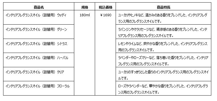 10/26(水) 無印良品 インテリアフレグランスオイル(詰替用) リニューアル発売のお知らせ