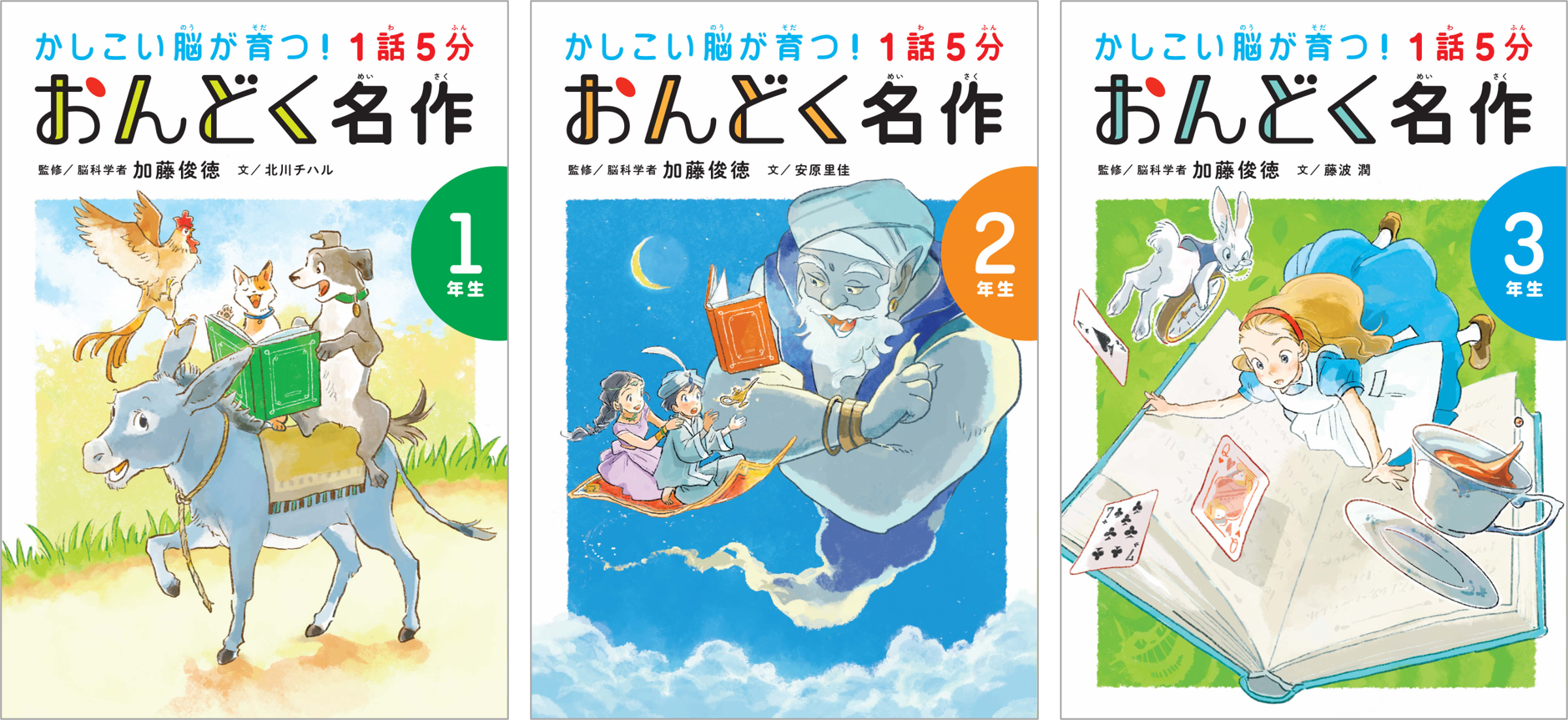 世界文化社は、文章を読むのが苦手な子ども向けの「かしこい脳が育つ!1話5分 おんどく」シリーズ第2弾で、日本と世界の名作を各12話収録した 『1話5分 おんどく名作 1年生』『同 2年生』『同 3年生』を2022年8月3日(水)に同時発売しました。