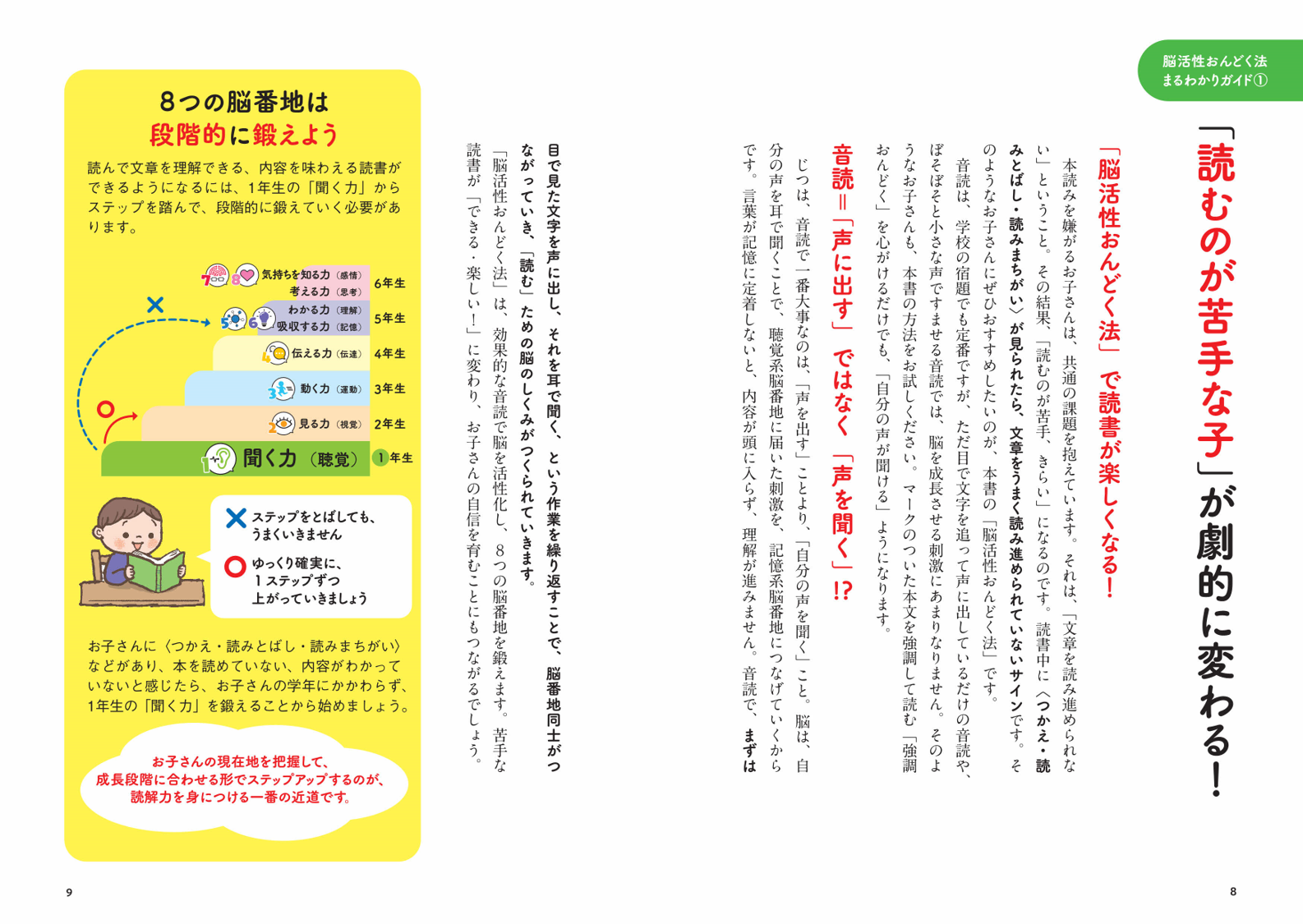 マークがついた部分を大きな声で強く読むことで、自分の声を脳で「聞く力」が強化されます。