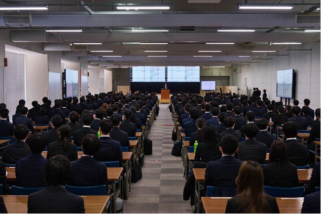シャープは、本日、大阪府堺市にある本社会場にて「2025年度入社式」を開催しました。本年度は6年ぶりに本社での対面参加を基本とし、新入社員402名が参加しました。入社式では、代表取締役 社長執行役員 CEOの沖津雅浩の祝辞の後、新入社員代表2名が入社にあたっての抱負を述べました。
