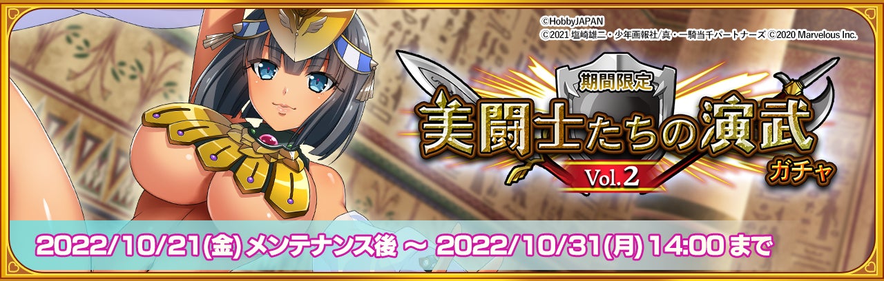 ▽クイーンズブレイドUNLIMITEDコラボ記念「美闘士たちの演武ガチャ」開催期間
