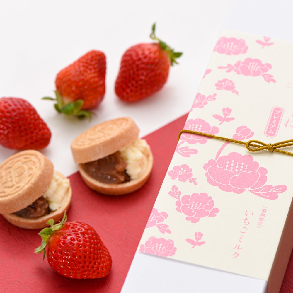 国産の苺を贅沢に使用した瑞々しいジューシーな味わいの口どけ良いいちご餡に、北海道産のミルクを合わせて炊き上げました。 税込1,944円