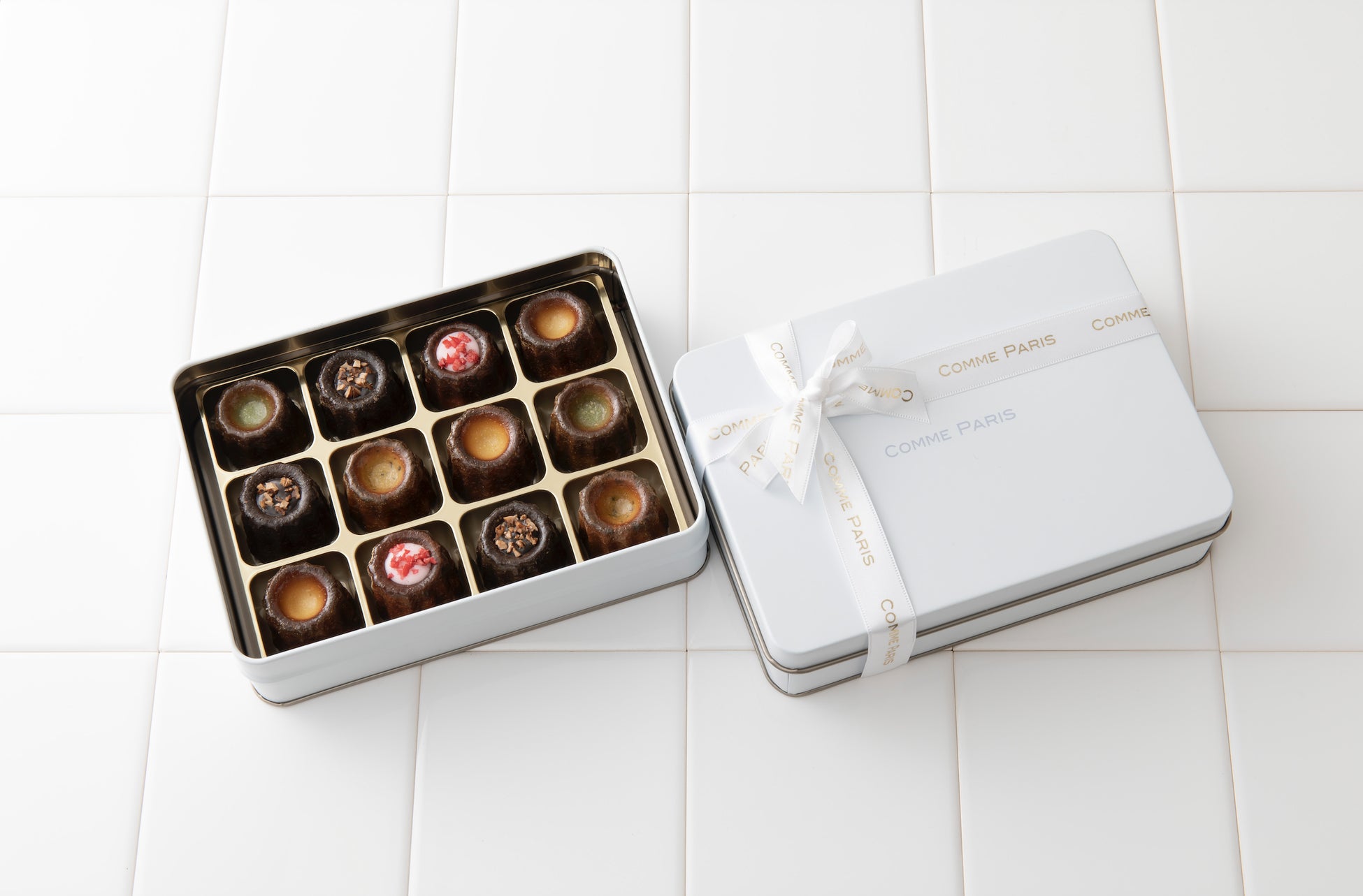 8:〈COMME PARIS〉 場所:地階西入口催事場大好評のオリジナル缶に、プレーン、いちご、ショコラ、アールグレイ、抹茶の5種類のプチカヌレを詰め合わせた特別な商品です。