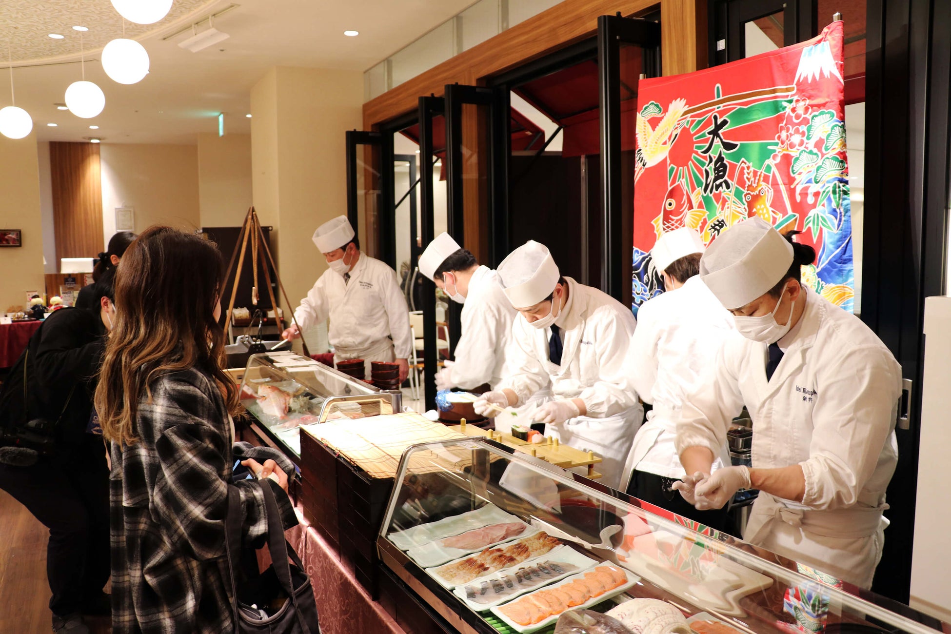 佐渡近海物や村上市岩船港など下越地方の魚介をはじめとした海の幸はもちろん、山の幸、郷土料理やご当地グルメなど、うまさぎっしり新潟の豊かな食材を堪能できるメニューを、ランチタイムや和洋朝食ビュッフェにて提供しております。