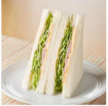 【内容】レタス・ハム・チェダーチーズを組み合わせたサンドイッチです。