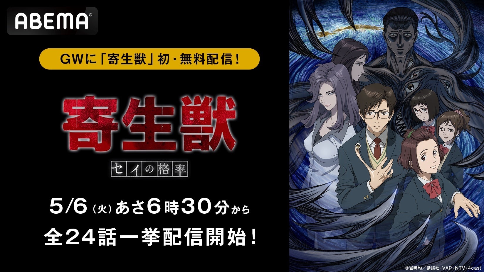 新しい未来のテレビ「ABEMA」は、2025年5月1日(木)より、大人気TVアニメ『寄生獣 セイの格率』の「ABEMA」初配信を開始するとともに、5月6日(火・祝)、7日(水)に全話無料一挙放送することをお知らせいたします。