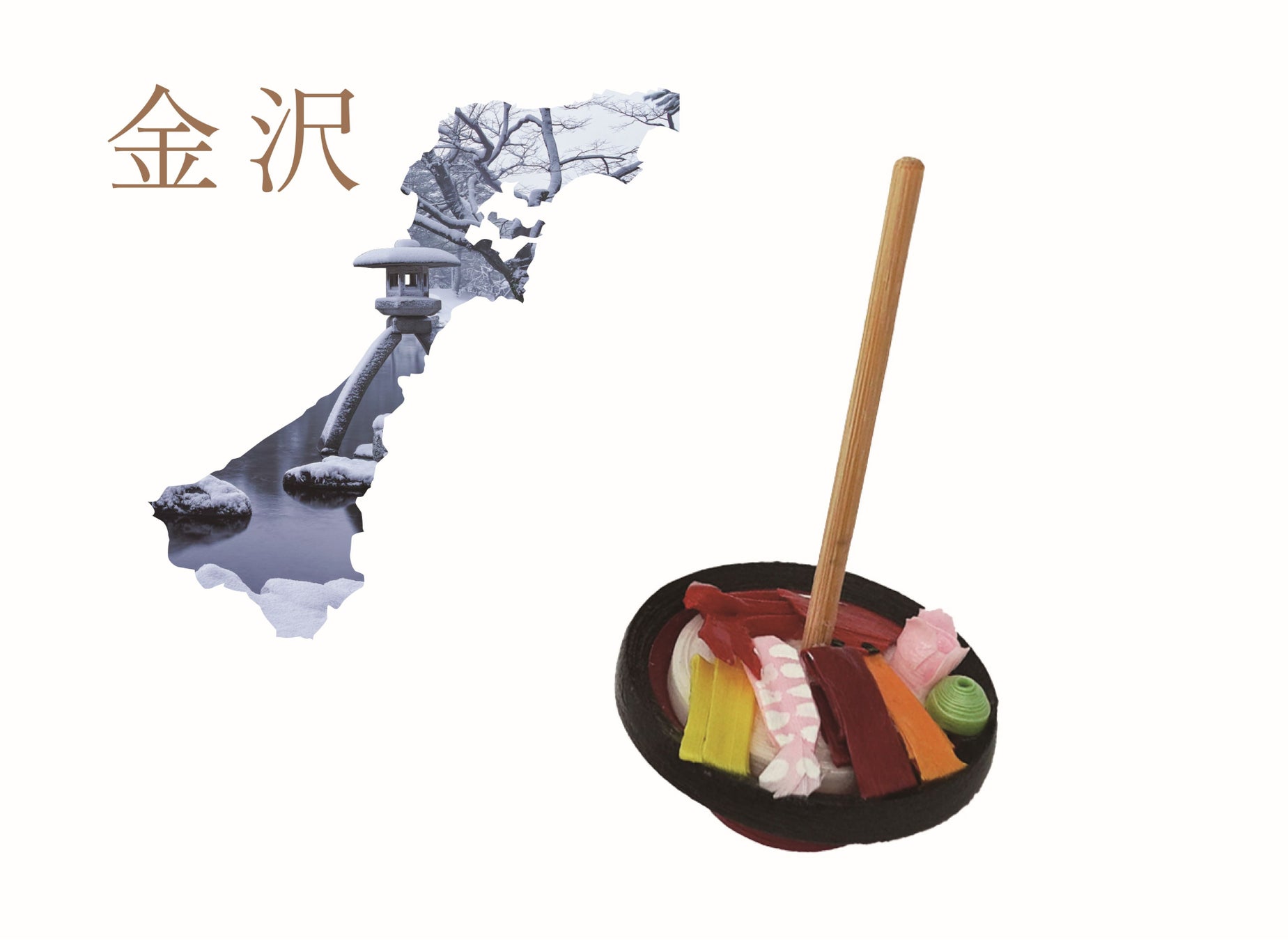 生鮮魚介類の支出が全国トップクラスの金沢市。古くからの伝統の技と新鮮な食材に恵まれ、加賀百万石とうたわれる豊かな地です。カニやエビ、マグロを載せた彩り豊かな海鮮丼の京こまを制作いただけます。