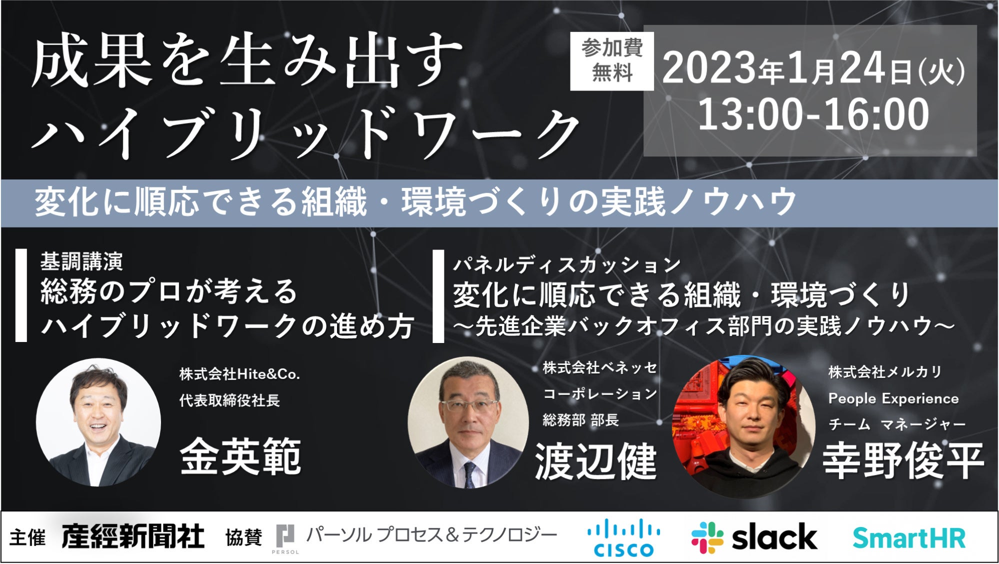 セミナー「成果を生み出すハイブリッドワーク」 来年1月24日(火)13時からオンライン開催 《参加者募集》