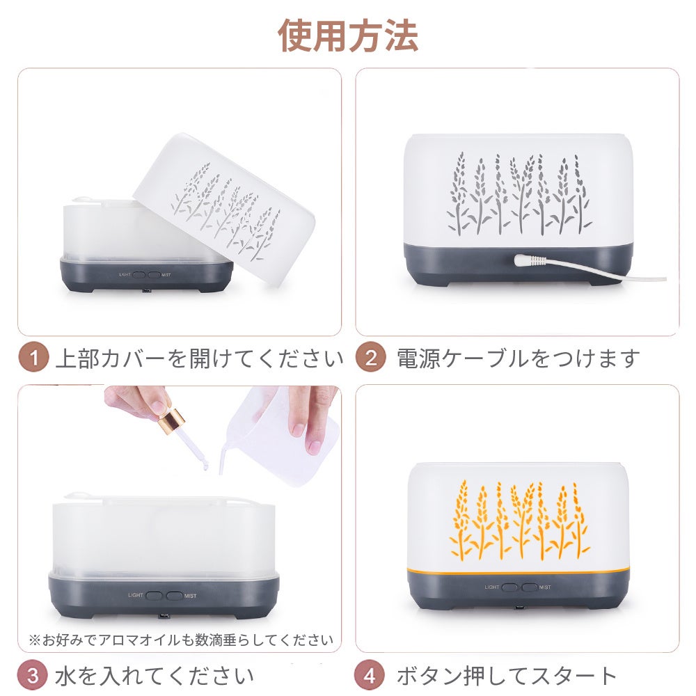 ※ アロマオイルを併用される場合は、天然エッセンシャルオイルをご使用ください。化学物質が含まれている場合は、成分や香料による不純物によって、製品に損傷を与える可能性があります。