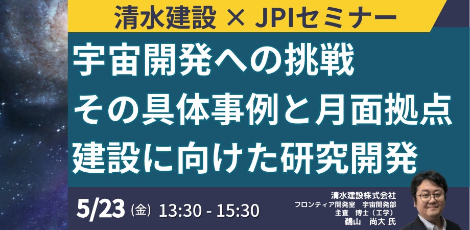 【JPIセミナー】「清水建設(株)の宇宙開発への挑戦 その具体事例と月面拠点建設に向けた研究開発について」5月23日(金)開催