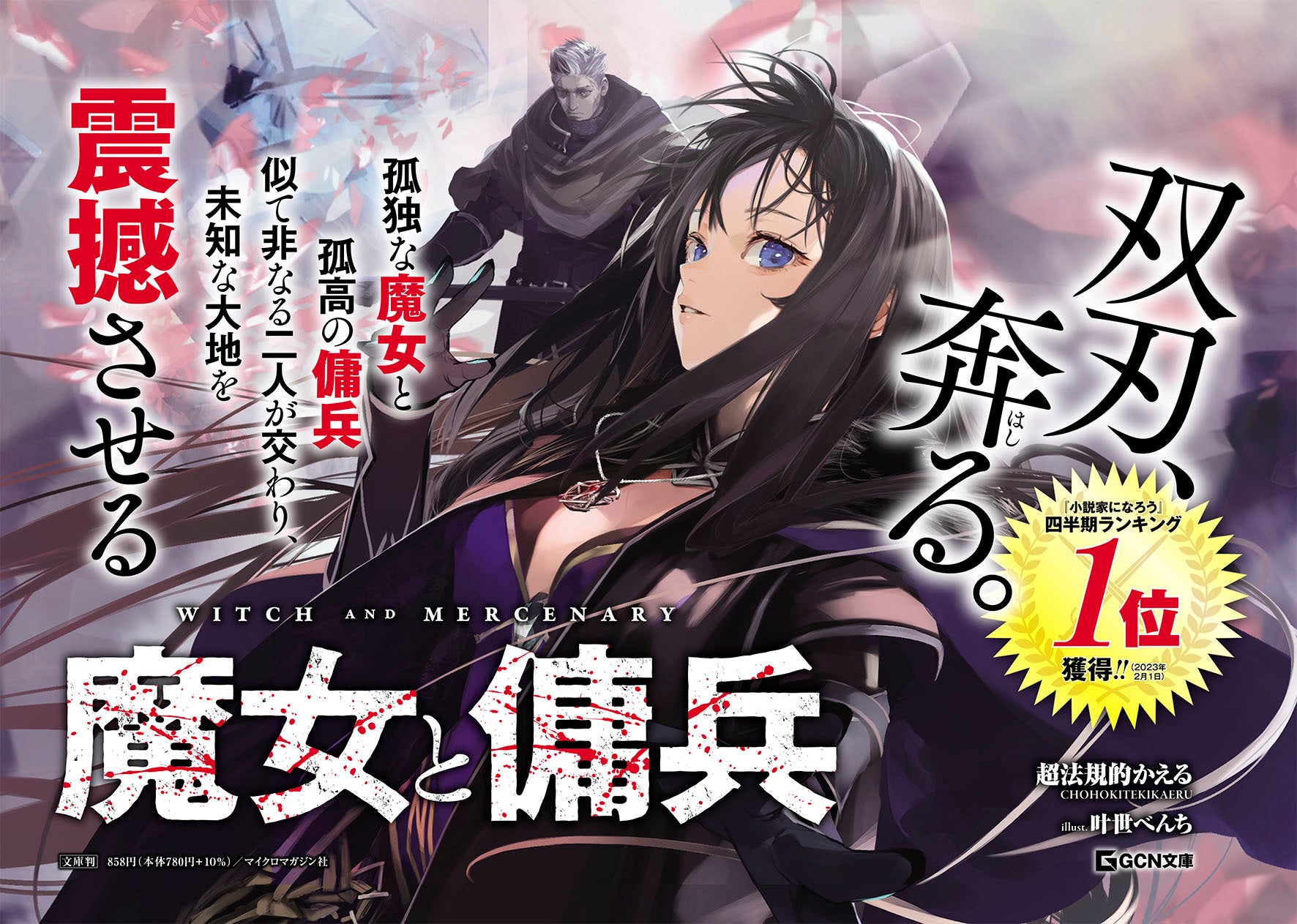 「小説家になろう」四半期ランキング1位獲得の話題作、GCN文庫『魔女と傭兵』大型広告が秋葉原駅に登場!双刃、奔る。 歪な二人が交わるとき、物語は始まる――