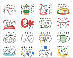 手をつないで踊る5人の旅仲間を表すクラブツーリズムのコーポレートマークをモチーフとし、「くま」と「ぶた」の可愛らしさを表現したデザインが特徴の5匹の「くまぶー」とLINEスタンプでも大人気のキャラクター「ガーリーくまさん」のコラボレーションが実現しました。「くまぶー」&「ガーリーくまさん」のクリスマスや新年の挨拶など季節感あふれるスタンプに加え、感動を共有したり応援したりといった日常でも使いやすい全16種類のスタンプとなっております。これらのスタンプは、クラブツーリズムのLINE公式アカウント(ID:@club-t)を「友だち」として追加していれば、どなたでも無料でダウンロードしてご利用いただけます。