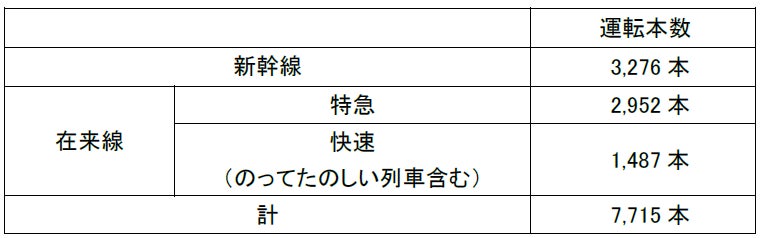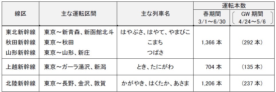 ※東北・秋田・山形新幹線のうち、併結して運転する列車は1本として計上しています。