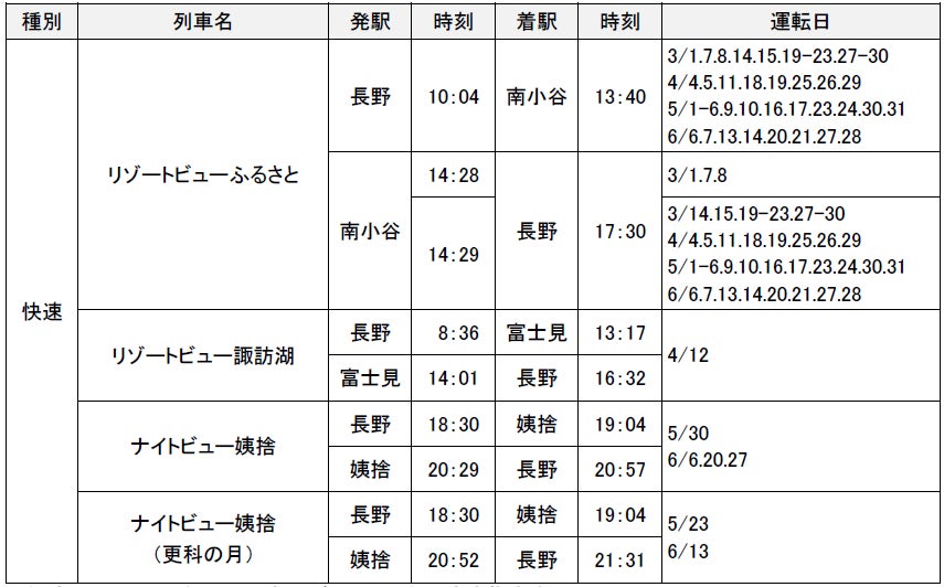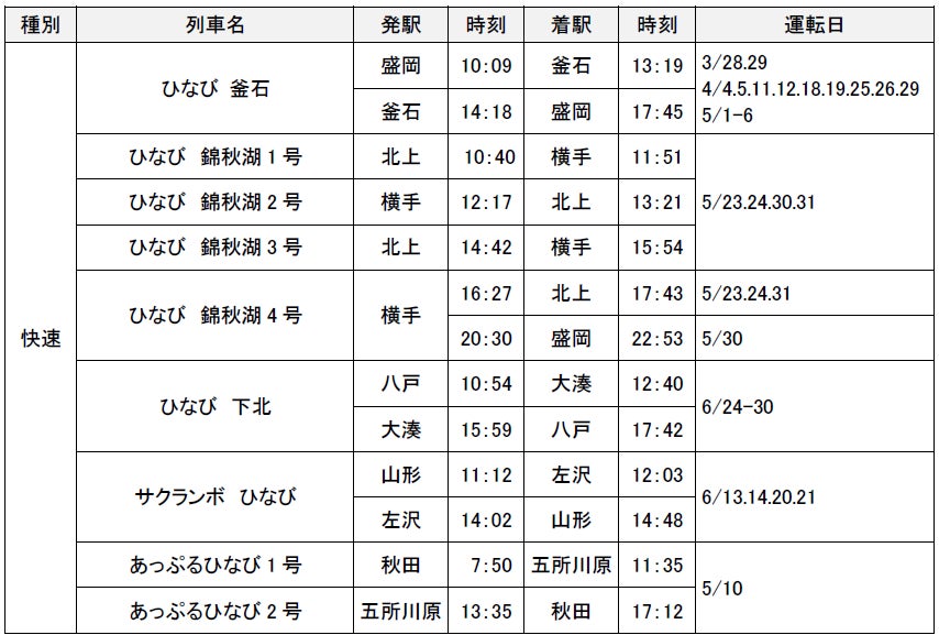 ※その他にも「のってたのしい列車」やイベント・キャンペーンに合わせた列車、行楽に便利な臨時列車を運転します。在来線臨時列車の詳細については別紙をご覧ください。時刻表もあわせてご覧ください。