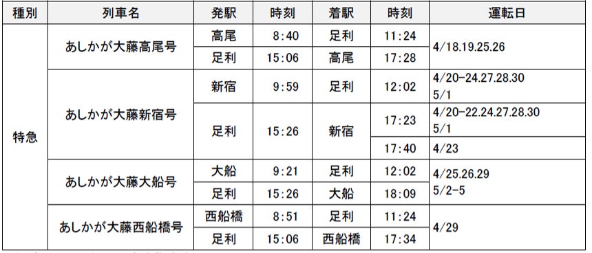 ※4/21.22運転の「あしかが大藤新宿号」は、253系6両(全車指定席)で運転します。
