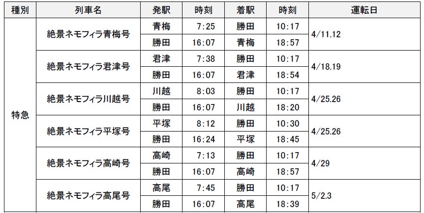 ■編成 絶景ネモフィラ青梅・君津・川越・高崎・高尾号:E653系7両(全車指定席)