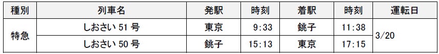 1.春の臨時列車の運転期間