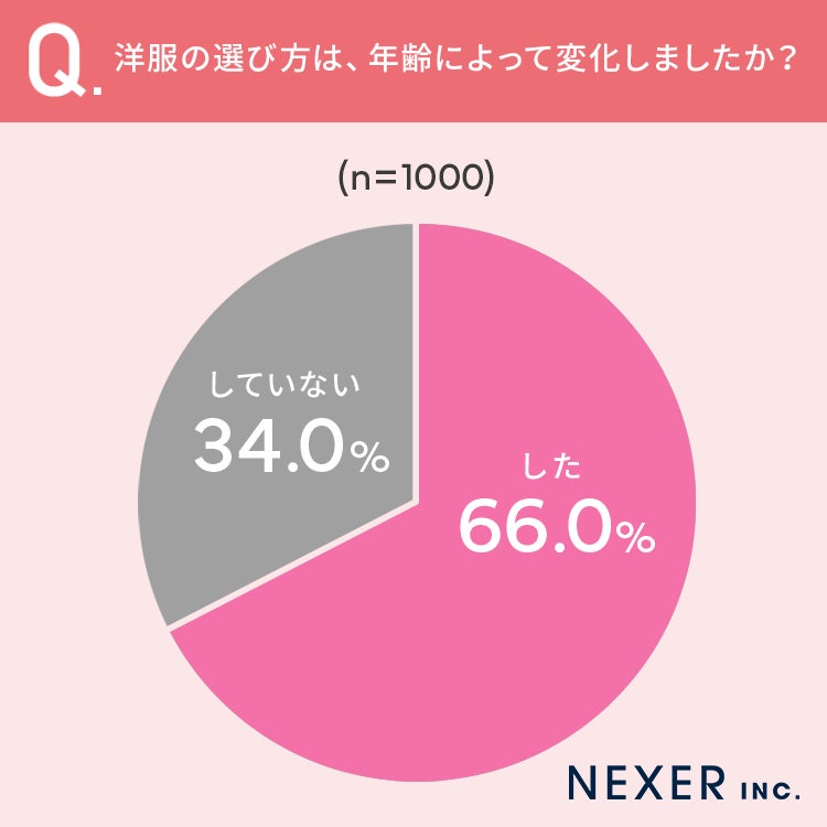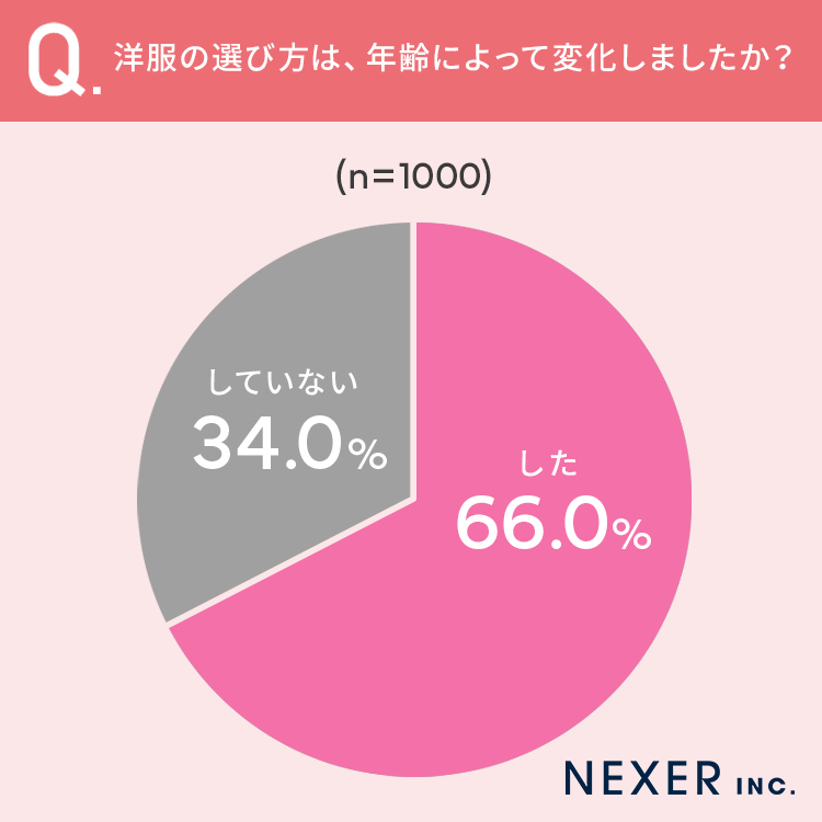 66%の方が、年齢によって服の選び方が「変化した」と回答しています。